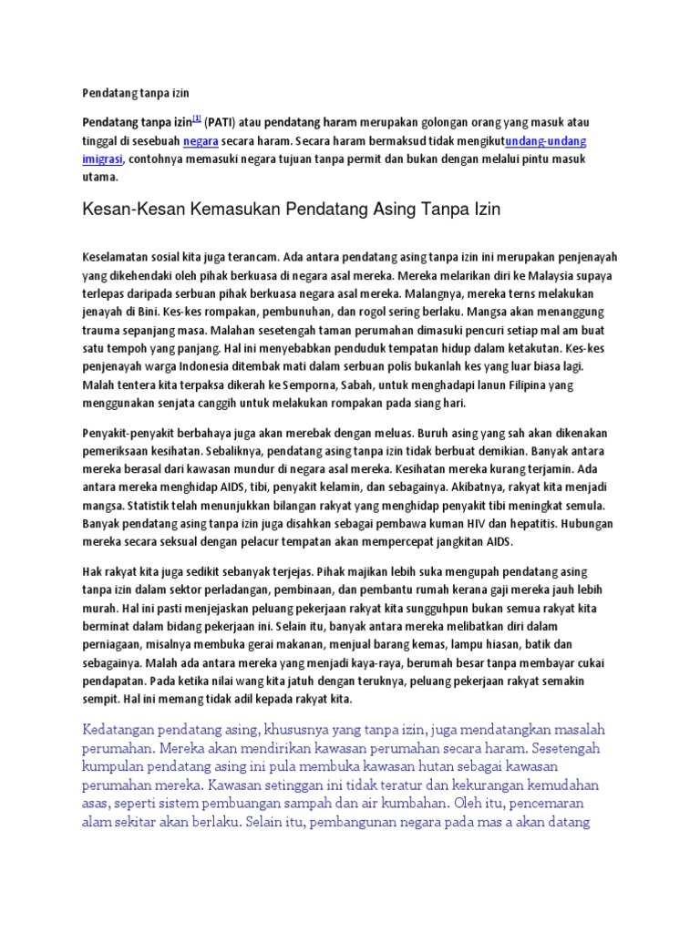 Pendatang asing dapat dikategori kepada dua kelompok iaitu pendatang asing yang sah dan pendatang asing tanpa izin(pati). So please help us by uploading 1 new document or like us to download We are a sharing community. Sya nk pesan jgn terkejut ngn blog sya yg bosan ==' im just new. *act , bkan sya buat* kawan.