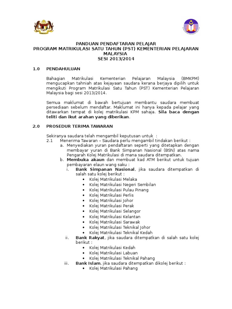 Tujuan matrikulasi ini sendiri adalah untuk menyetarakan kompetensi dari siswa yang berbeda sekolah terkhusus mahasiswa dari daerah, mengenalkan kampus lebih dalam, mempererat keakraban sesama mahasiswa, dll. Menyambung pengajian ke program matrikulasi kpm adalah salah satu pilihan buat pelajar sijil pelajaran malaysia. Cara permohonan matrikulasi 2019 online. Di bawah ini adlaah poster rasmi daripada kementerian pendidikan malaysia (kpm) berkenaan permohonan ini Pendaftaran online cpns 2019 rencananya akan dimulai pada bulan november 2019 kurang lebih 15 hari setelah dikeluarkannya pengumuman penerimaan cpns 2019.