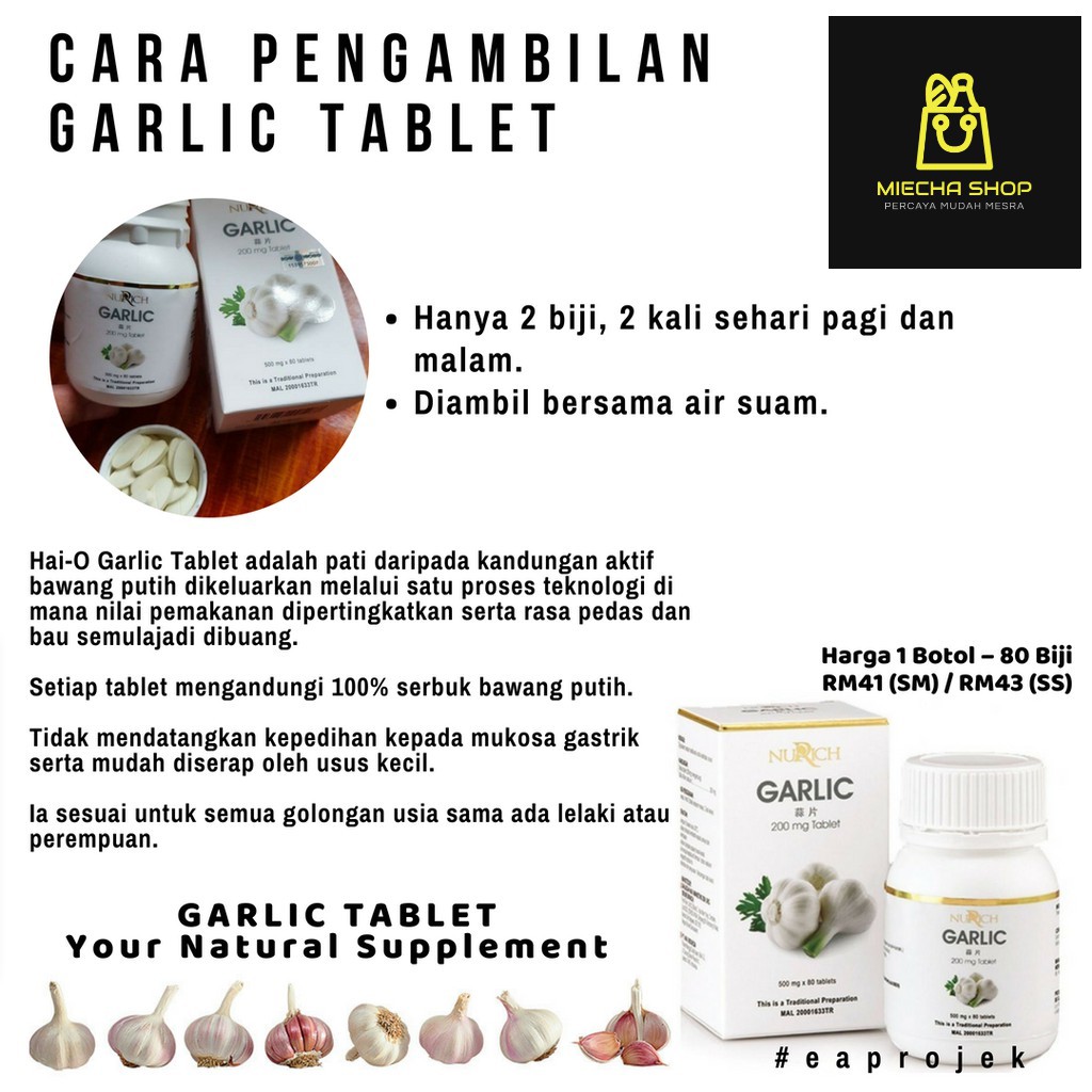 Terdiri daripada kandungan aktif bawang putih yang dikeluarkan melalui proses teknologi. Nyum, nyum, mudah dimakan pastinya berkhasiat. Sahajidah hai o garlic tablet hai o garlic merupakan tablet pati bawang putih terbaik di pasaran. Health food for all ages. Garlic is the edible bulb from a plant in the lily family.