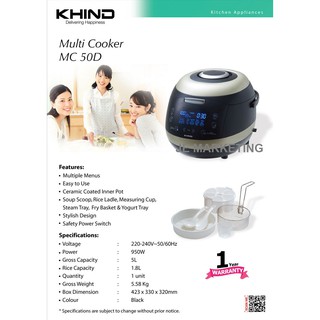 Khind Multi Cooker Mc50D : Khind Rice Cooker Price Promotion Apr 2021 Biggo Malaysia / 4 pcs squids (cut into.. It stands out from the typical design of a multi cooker. Lessen your cooking effort with innovative mini multi cooker available at alibaba.com. * *fully automated with pre set menus for easy preparation of delicacies, soups, herbal tonics. 340 x 340 x 305mm ● colour: Khind multi cooker comes with ceramic coated inner pot to let you cook without any hassle.